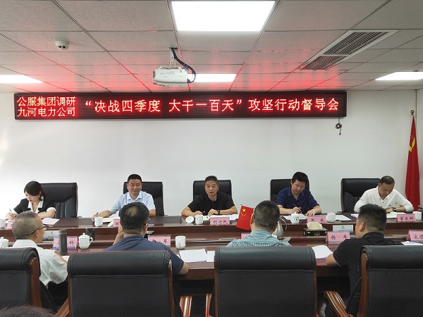 9月30日下午,市公服集团副总经理胡为民一行莅临九河电力公司指导工作,并召开“决战四季度、大干一百天”攻坚行动督导会,会议由市公服集团党委委员、监事会主席周威主持。市公服集团监事办、战略发展投资部、运营管理服务部等部门负责人陪同调研,九河电力公司在家领导班子、各部门负责人参加会议。