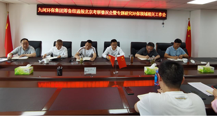 2023年4月18日,九河环保集团筹备组组长、九河电力党委书记、董事长牟永立在九河公司会议室组织召开通报北京考察情况会暨专题研究环保领域相关工作会,并传达了4月18日市公服集团公司一季度项目调度会会议精神。九河环保集团筹备组在家领导、投资发展工作组、小水电收购项目专班、沼气发电收购项目专班和环保咨询及检验检测专班参加了会议。