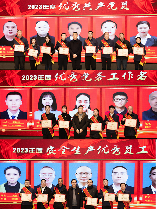 表彰先进树榜样,锚定目标再出发。大会表彰了 2023年度先进党支部、优秀共产党员、优秀党务工作者、2023年度先进集体、先进个人和安全生产优秀集体、安全生产优秀员工,以及2023年度工会工作积极分子。获得表彰的先进集体代表、先进个人代表作交流发言,公司生产经营部门代表对2024年工作作表态发言。