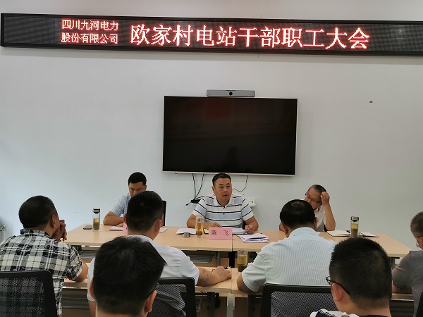 在欧家村电站、安寨坪电站、汇森电站分别召开了干部职工大会。会上,组织学习了《习近平谈治国理政》(第三卷)章节、省委书记彭清华来宜视察调研重要指示和讲话精神、《中国共产党党纪律处分条例》章节、习近平总书记对四川工作系列重要指示精神、传达贯彻省委十一届七次全会、市委五届九次全会精神;通报驻市国资委纪检监察组《关于在市属国有企业开展干部作风大整顿督查的情况通报》;宣读中共四川九河电力股份有限公司委员会《关于唐春梅等同志职务任免的通知》,并就新履职的同志开展集体谈话。