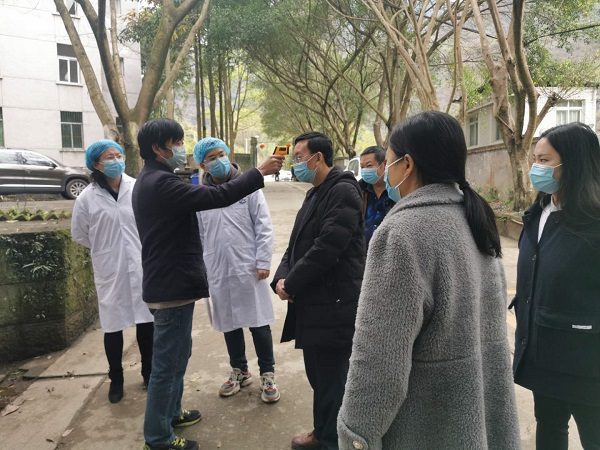 3月10日,市、县疾控中心督导组在夏溪乡副乡长温旭梅陪同下到欧家村电站检查疫情防控工作情况。