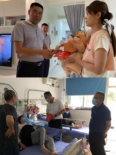 走访慰问,为民办事。七一前夕,市国资委党委委员、副主任罗景元率队入户看望公司生病党员,及时传递党组织温情;公司党委书记、董事长陈飞带领班子走访慰问生病党员,践行“我为群众办实事”的初心。