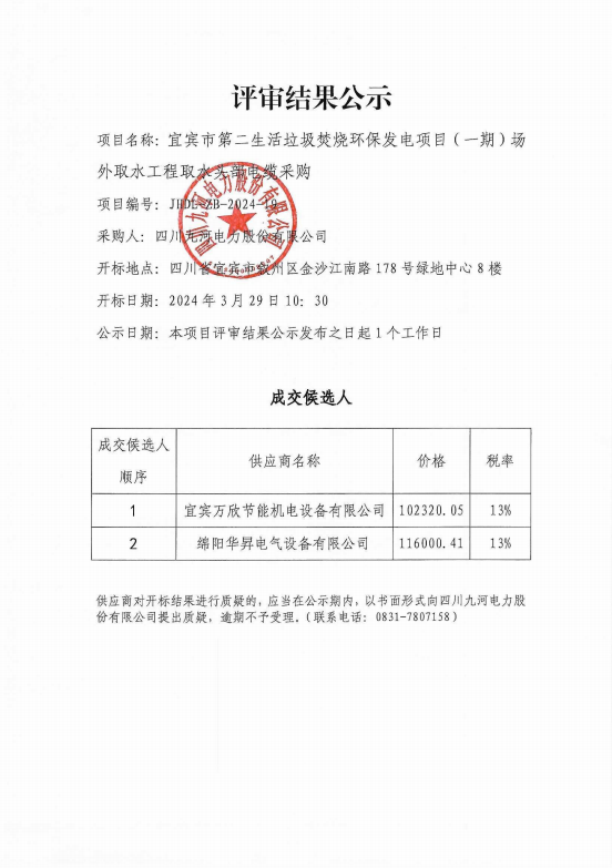 四川九河电力股份有限公司合作供应商(第二批)征集入库项目招选公告