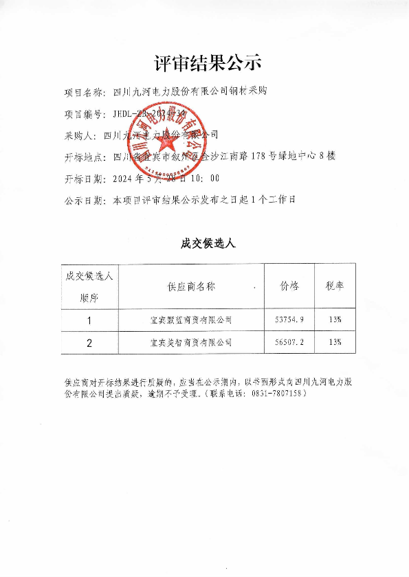 四川九河电力股份有限公司关于110kV桥欧线96#-97#段线路隐患整治工程塔材采购塔材采购项目询比公告