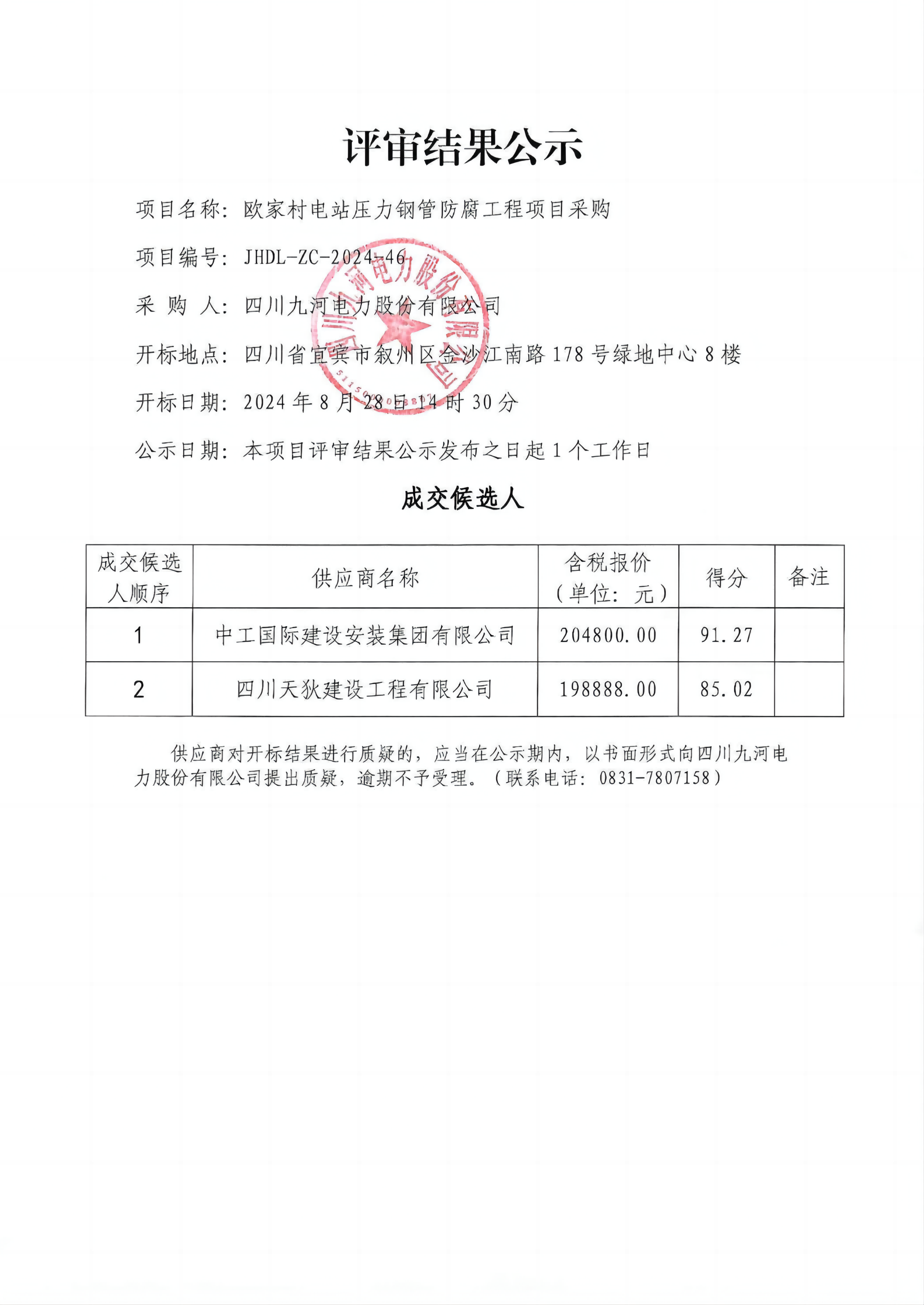 四川九河电力股份有限公司关于110kV桥欧线96#-97#段线路隐患整治工程塔材采购塔材采购项目询比公告
