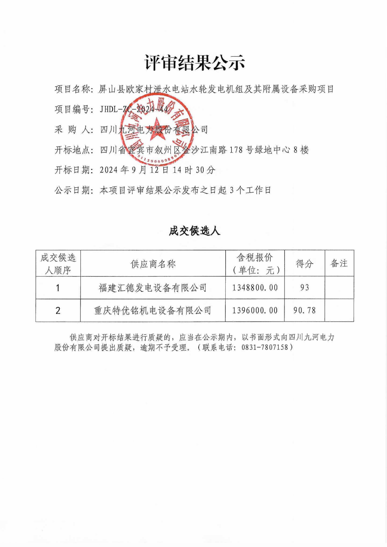 四川九河电力股份有限公司合作供应商(第二批)征集入库项目招选公告