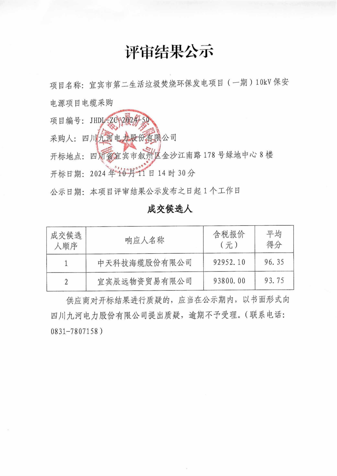 四川九河电力股份有限公司合作供应商(第二批)征集入库项目招选公告