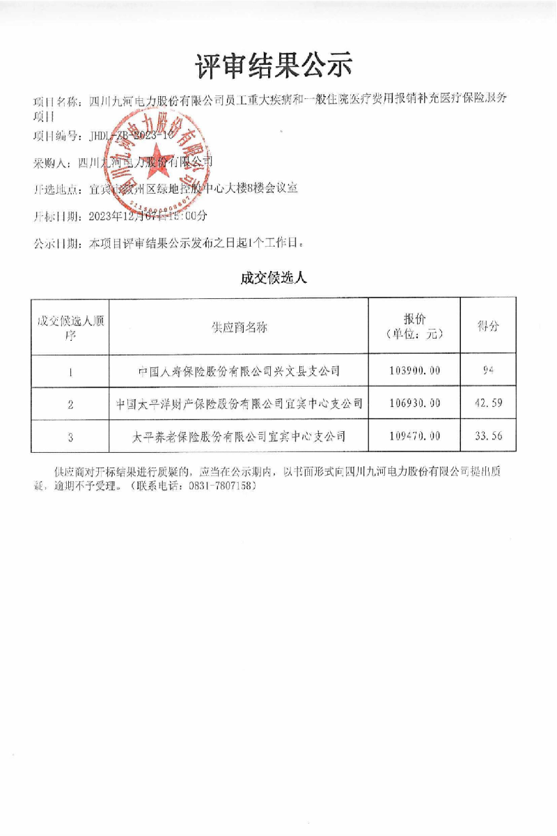 四川九河电力股份有限公司安全生产责任保险服务采购标前询价函