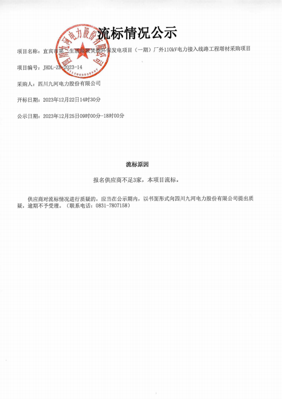 四川九河电力股份有限公司合作供应商(第二批)征集入库项目招选公告