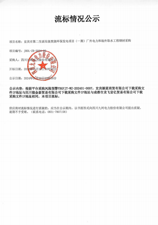 四川九河电力股份有限公司关于110kV桥欧线96#-97#段线路隐患整治工程塔材采购塔材采购项目询比公告